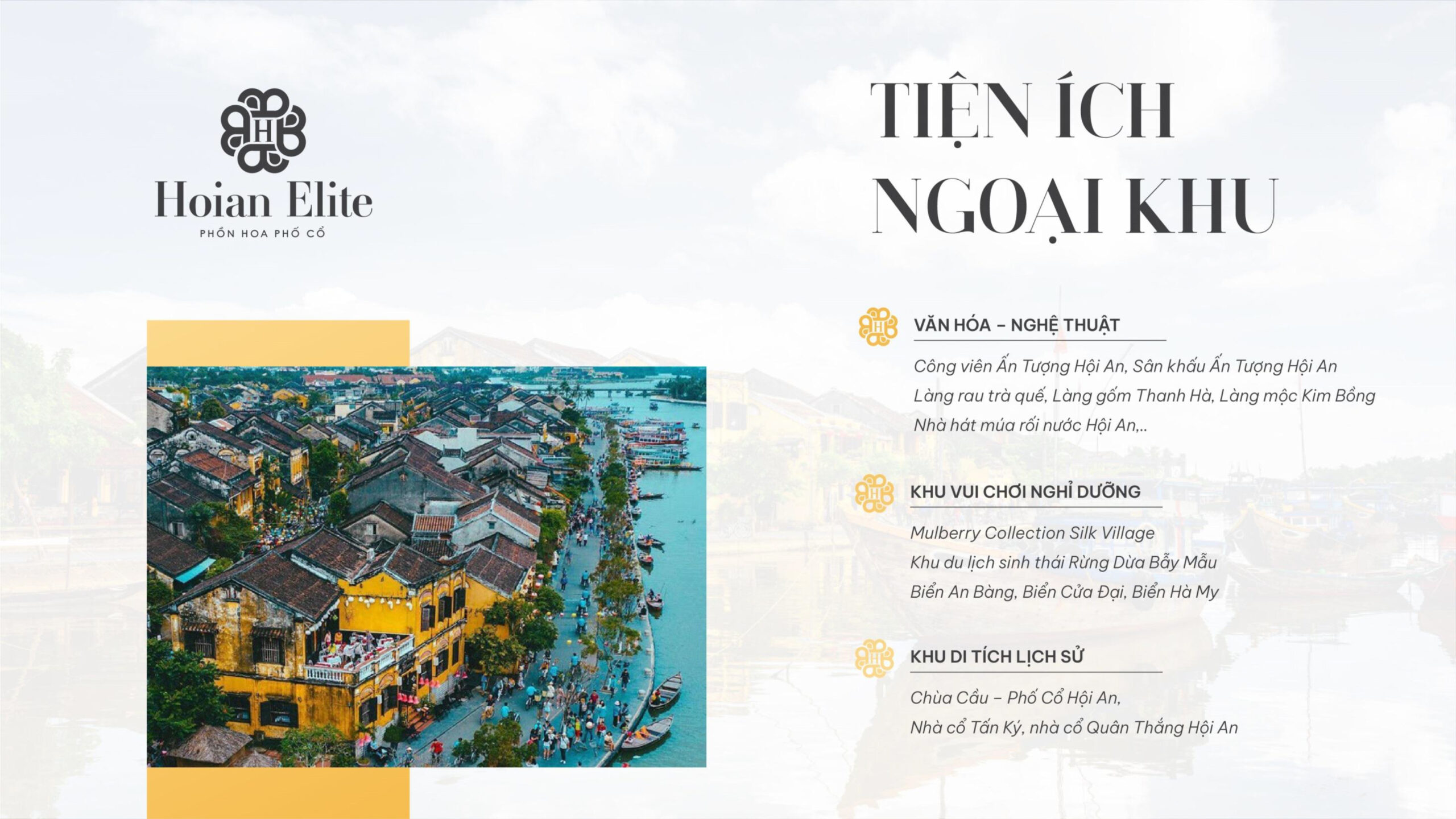 Hoian Elite – Bản giao hưởng tinh tế giữa vẻ đẹp nghệ thuật cổ đại hòa quyện cùng tác phẩm xu hướng sang trọng. Kiệt tác vượt thời gian được kiến tạo đáp ứng nhu cầu của giới thượng lưu, nơi tận hưởng không gian sống đẳng cấp và đầy danh giá.